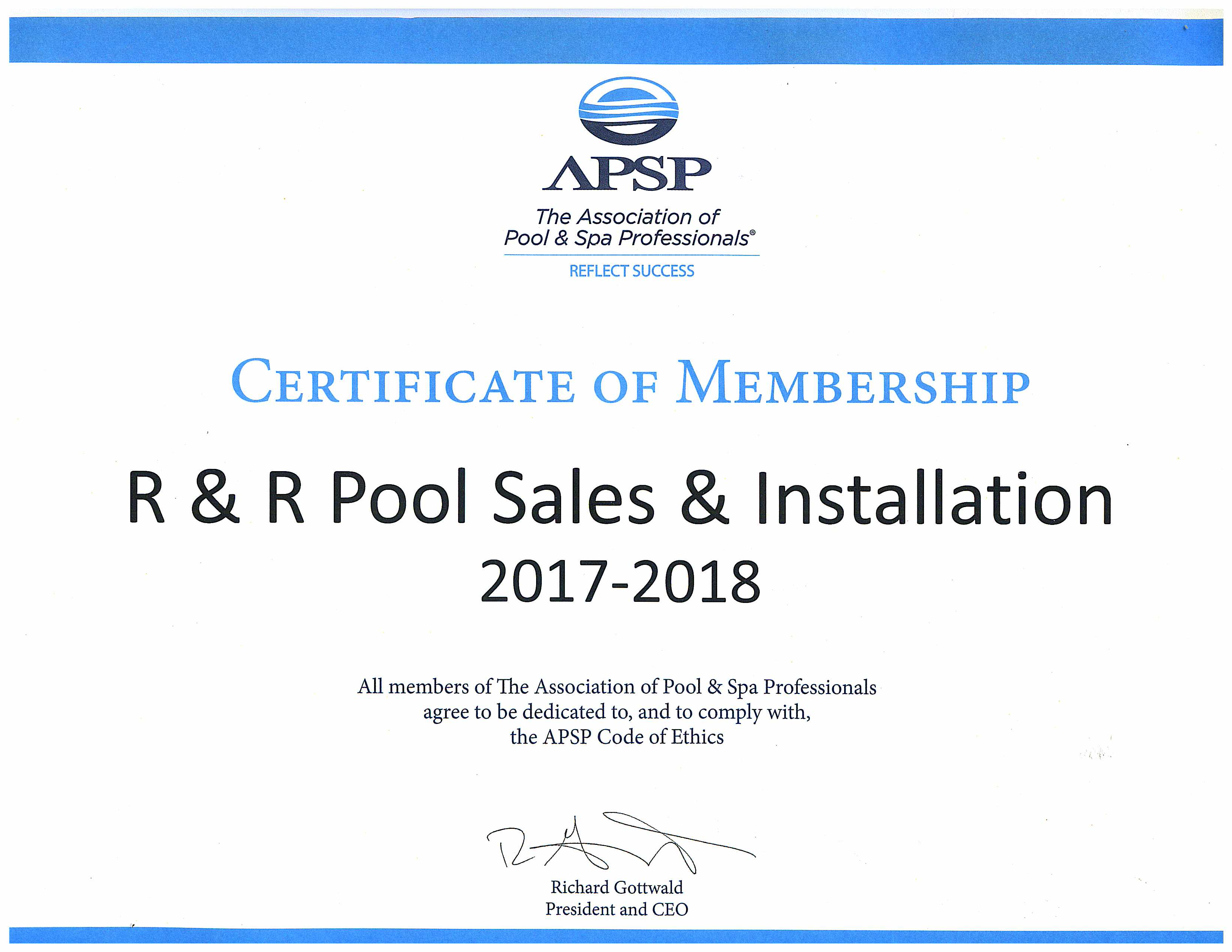 R&R Pools are certified members of several Pool and Hot Tub Organizations