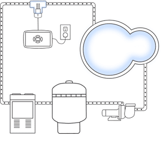 The ClearBlue system consists of a controller, a tee and a set of mineral plates called an electrode. The tee is plumbed into your plumbing on the line that runs filtered water into your pool. The electrode is threaded into the tee and is connected to the controller with an electrical cable.