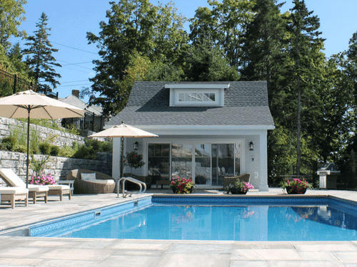 Take into consideration a few smaller (but important) factors. Where does the sun spend most of its day in your yard? Do you want the sun on the pool, or would you rather the pool be in the shade? What will the view from the house out to the yard look like? Where will your guests change, what will the path from the house to the pool be like? What about privacy from your neighbors, how important is that to you? Consider using your fence style and landscaping (remembering those by-laws as well) to help protect your privacy.
