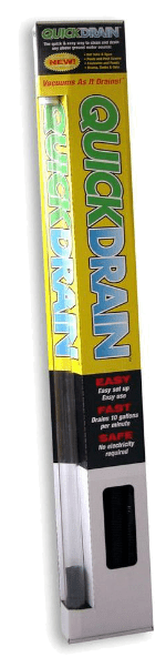 Drain your hot tub 5 times faster with this quick and easy drain system. Simply insert the pipe into the water and shake it to start the draining process. Use the hose to direct the water away from the tub or from your gardens (Extension hoses are also available to help ensure the water goes where you want it to). As the water is draining, Quick Drain will also vacuum out any debris, so all you have left to do is a quick wipe down before filling the tub back up. No electricity required!