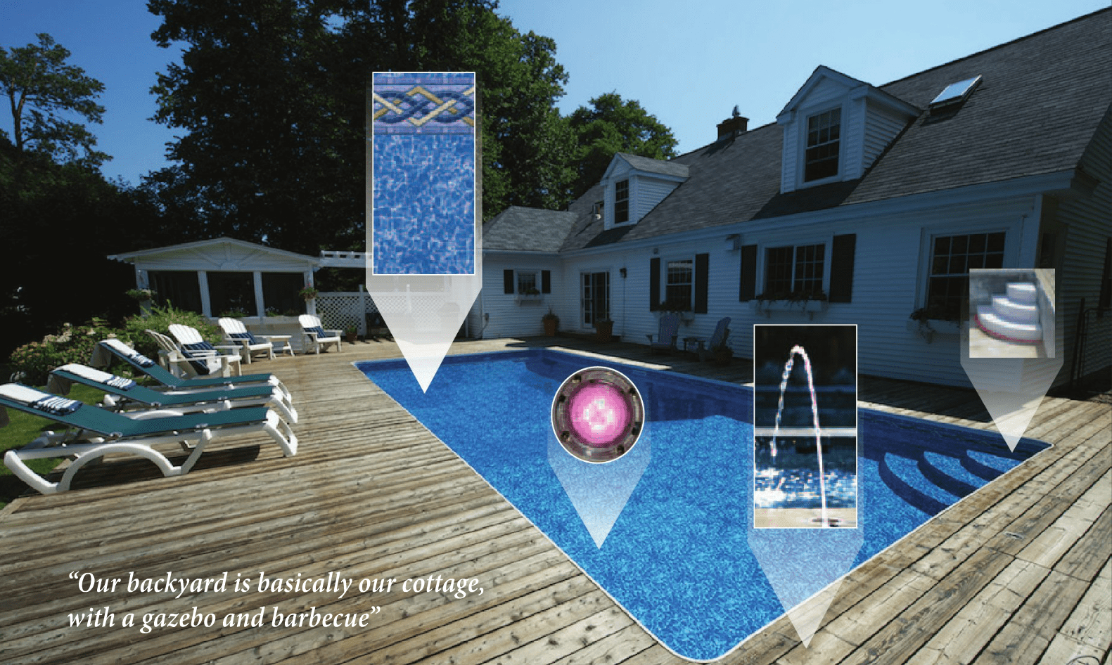 “Our backyard is basically our cottage,” David says, “with a gazebo and barbecue. We bought our house in 1999 and the pool came with it, but it was in terrible shape.”