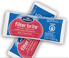 Prior to the pool closing it is important to brush walls and thoroughly vacuum the pool. We suggest cleaning your filter the day before you start your pool closing. The best way to do this is to use Bio Guard Filter Brite.