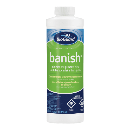 Banish – Inhibits and prevents algae in swimming pool water. Non-foaming, non-staining, BioGuard’s banish is the best preventative algaecide which works in all swimming pool types.