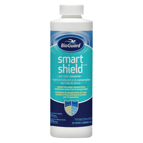Smart Shield – Forms an ultra-thin, invisible barrier on the surface of the pool to reduce evaporation. Limiting evaporation conserves your pool water and prevents heat. Use Smart shield regularly to increase your pool season. The long-lasting formula works up to 30 days after application.