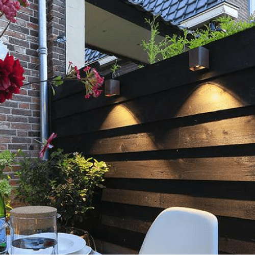 Wall lights can be used in various ways, for instance next to French doors or mounted on a wall. A beautiful effect is created when several wall lights are installed at eye level along a fence. The repeated placement also accentuates the depth of the yard in the evening. Do you want to precisely illuminate a pathway or driveway? The install the fixtures lower on the wall so that the light reaches the ground. Pergolas and overhangs can also be nicely illuminated with wall lights. For example, create a soft light on a pole or wall or use small spotlights to highlight your lounge area. Finally, you can also install a wall light “just next to the door”. Some wall lights in our range can be connected directly to the main power supply.