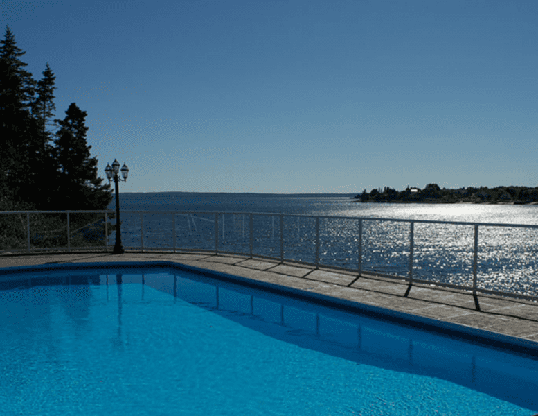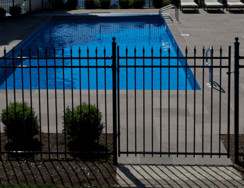 In Halifax Regional Municipality pools must be enclosed by a 5′ high fence that does not have any openings (between rails) that are greater than 4″ and cannot be constructed so that they facilitate climbing (example: horizontal boards with spacing in between them). Gates must be self-closing and self-latching.