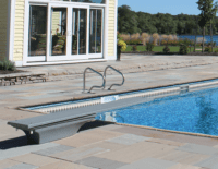 When you are planning your pool consider upgrading to a colour coordinated look. You can now get coping, skimmers, main drains, steps, slides and diving boards in gray. It gives the pool a completely different look!