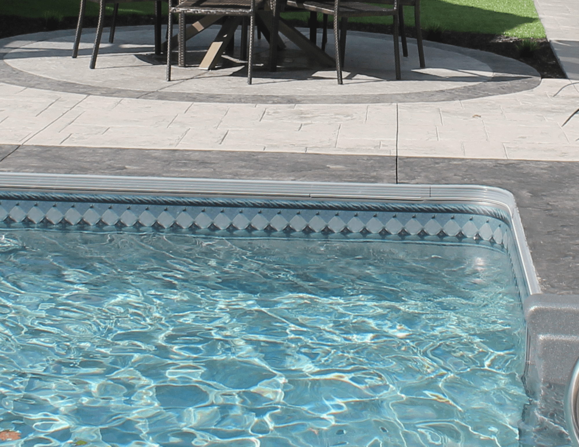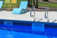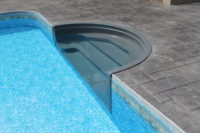 When you are planning your pool consider upgrading to a colour coordinated look. You can now get coping, skimmers, main drains, steps, slides and diving boards in gray. It gives the pool a completely different look!