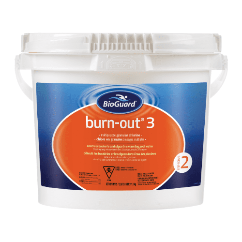 BioGuard Burnout 3 Chlorine Shock for Swimming Pools It takes just one treatment for BurnOut 3 is a quick-dissolving formula to shock, oxidize, clarify & kill bacteria! Plus, BurnOut 3 eliminates bather contaminants, producing crystal clear water. Use just once a week with one of our three step programs.