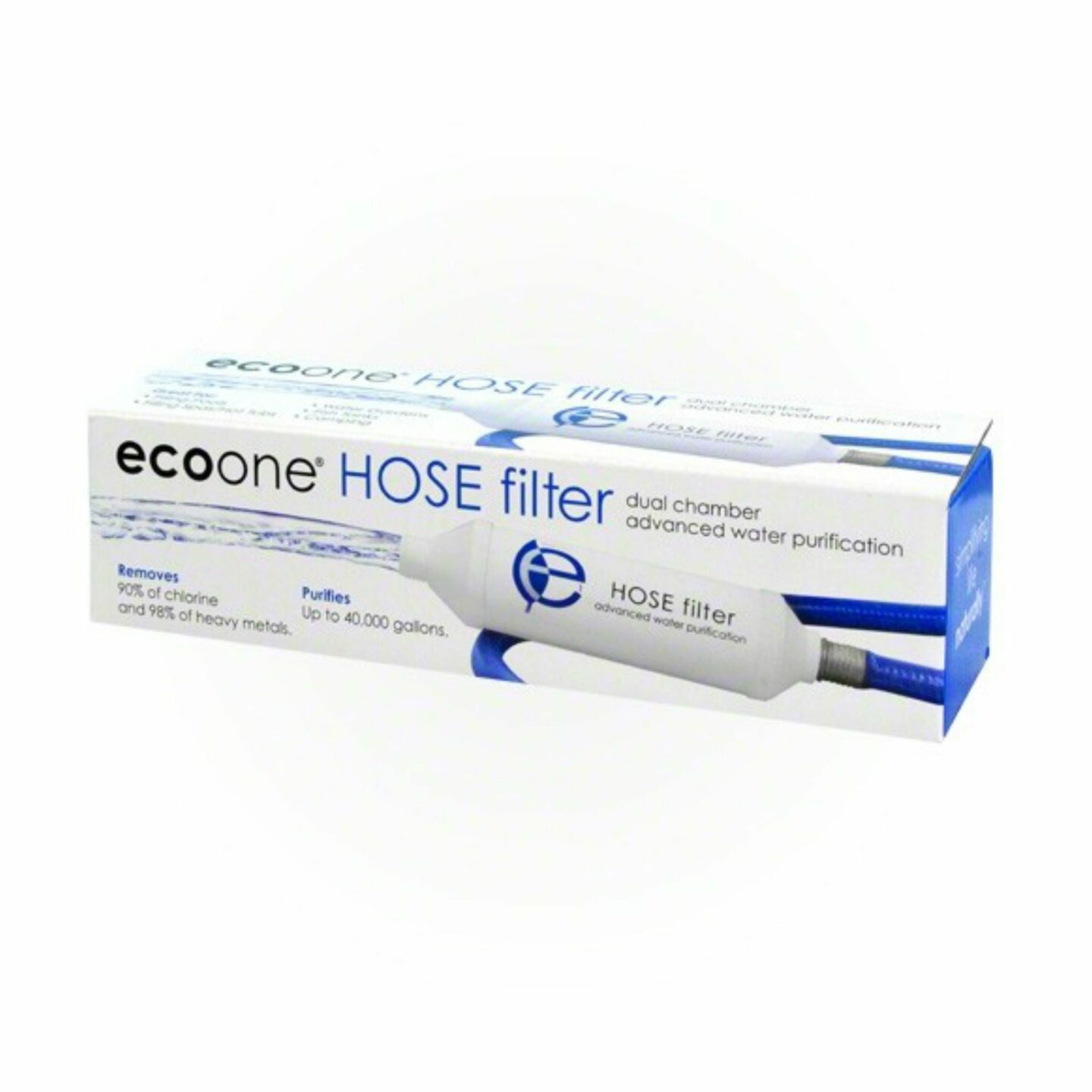 The EcoOne Hose Filter (pre-filter) is unlike other hose filters in the industry and filters up to 40,000 gallons of water. The all purpose EcoOne Hose Filter removes or greatly reduces thousands of water contaminants and easily attaches to a standard garden hose to provide fresh, pure, clean and decontaminated water for all of your outdoor water needs.