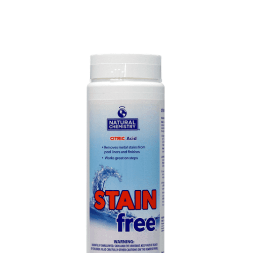 Stainfree™ is a citric acid product that removes metal staining on pool liners and finishes. Stainfree™ is ideal for treating staining on all pool surfaces and is compatible with all sanitizing systems. Use Natural Chemistry’s Metalfree™™ and you have the ultimate 1-2 combination for stain fighting!