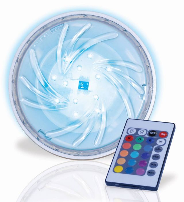 Magnetic LED pool light is specially designed for above ground (vinyl and steel walled) pools. It uses an internal magnet to affix the light to the inside of the pool wall. Easy to install and remove. Comes with on/off remote control for intensity and light effects. Powered by 3 AA batteries not included.