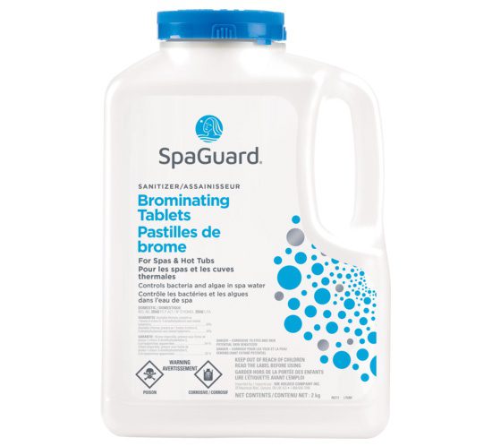The power of an organic brominating compound (BCDMH) compressed into 1-inch tablet.  These tablets are acidic and may lower pH, so pH and total alkalinity should be tested frequently and adjusted as necessary. Use Brominating Tablets in a brominator or in a SpaGuard Floating Dispenser.